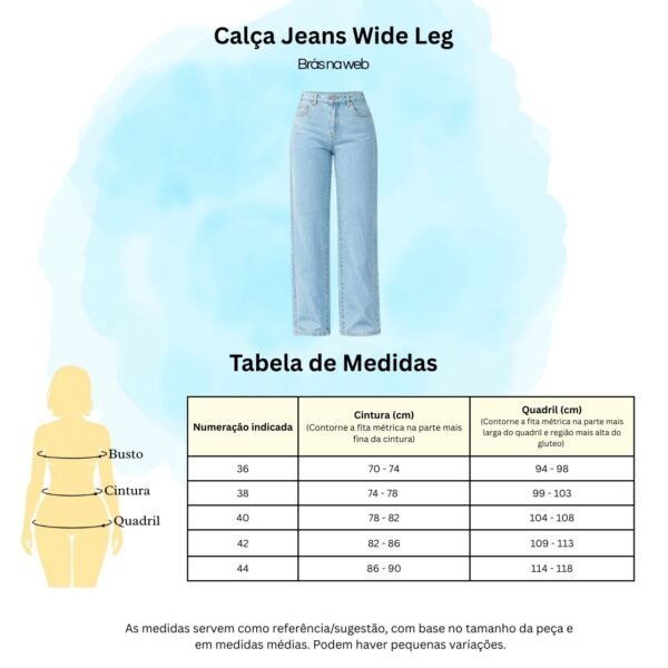 Calça Jeans Wide Basic – Wide Leg Feminina Moderna Cintura Alta Wide Basic
